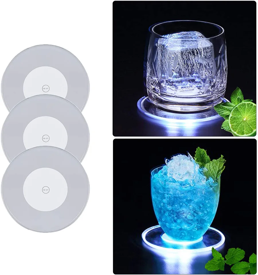 3/6/12 Pcs Ultra-thin Acrylic LED Cocktail Coasters Flashing Glorifier Drink Cup Mat Wine Coaster Lights for home Bar Wedding