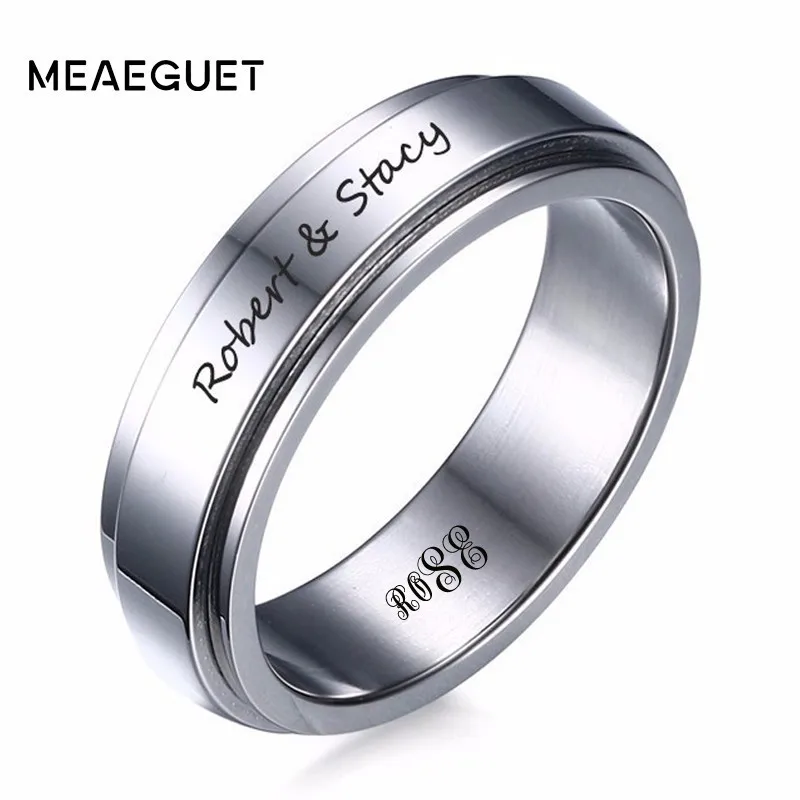 Best Personalized Stainless Steel Ring 6mm All Black IP Spinner Mens Women Ring In Silver Color Wedding Brands Free Engraving and You will save 10% or US $16.64 today