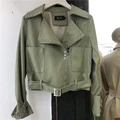 Punk Streetwear Rivet Short Faux PU Leather Jacket Waist Buckle Belt Women Slim Motorcycle Biker Jacket Female Spring Autumn New