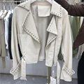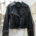 Costomer Scores and Reviews for Punk Streetwear Rivet Short Faux PU Leather Jacket Waist Buckle Belt Women Slim Motorcycle Biker Jacket Female Spring Autumn New